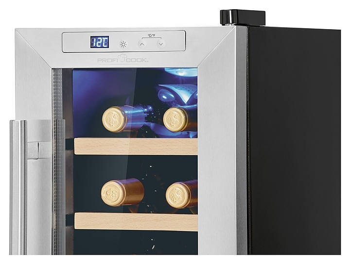 Винный шкаф Profi Cook PC-WK 1233 предназначен для охлаждения и длительного хранения бутилированного и разливного вина в частных домах, квартирах, отелях и офисах. Модель оснащена панелью управления cо светодиодным дисплеем с синей подсветкой, 3 съемными полками и регулируемыми ножками. Дверь выполнена из трехслойного стекла с защитой от УФ излучения, полки - из дерева.