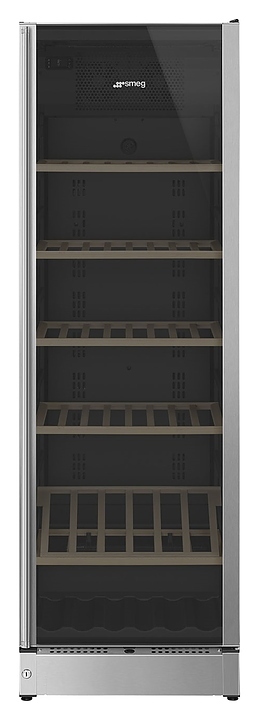Винный шкаф SMEG SCV115G предназначен для охлаждения, хранения при оптимальных условиях и демонстрации бутилированного вина различных сортов в гостиницах и домашних условиях. Модель оснащена холодильной камерой с 2 температурными зонами, интегрированной в основание стационарной полкой, правосторонней распашной дверью с длинной трубчатой вертикальной рукояткой, обзорным окном, расположенными внутри камеры сенсорной панелью управления и светодиодным 7-сегментным цифровым дисплеем с белой подсветкой индикации. Боковины выполнены из стали с антикоррозийным покрытием порошковой краской черного цвета, рама двери, цокольная панель и рукоятка – из нержавеющей стали с серебристой поверхностью и обработкой против отпечатков пальцев, задняя панель – из металла, остекление двери– из стекла Stopsol, выдвижные полки – из массива древесины светлой породы.