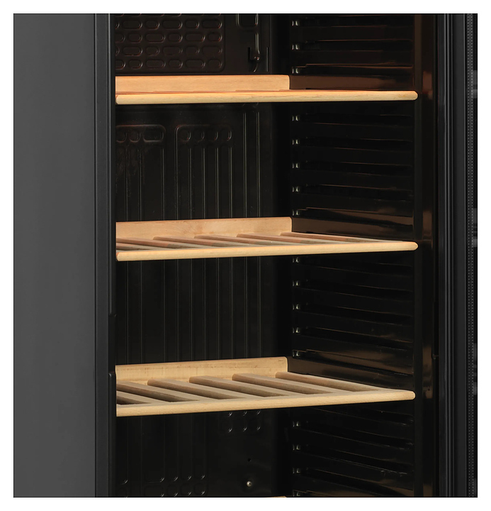 В комплект поставки входят 6 регулируемых деревянных полок для вина.