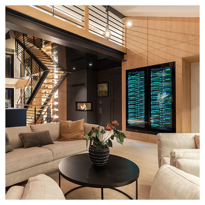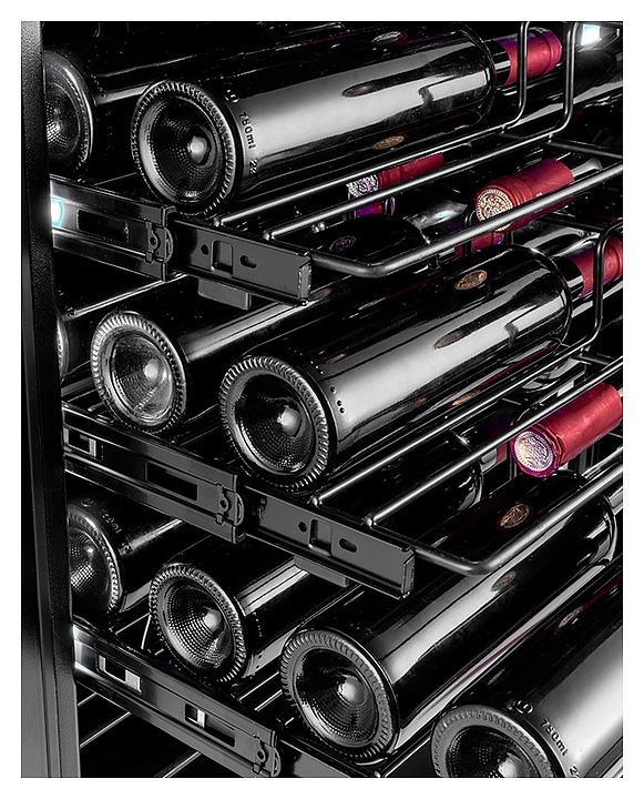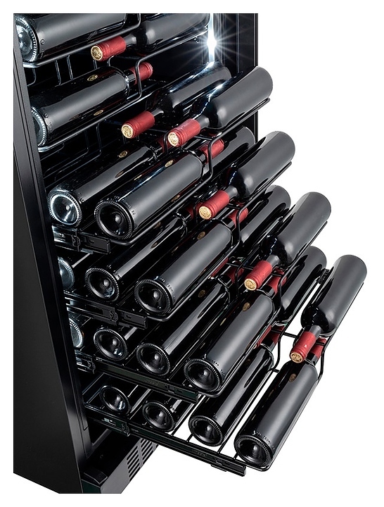 - Специальная двухуровневая конструкция полок для эффектной демонстрации с обзором винных этикеток