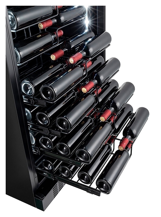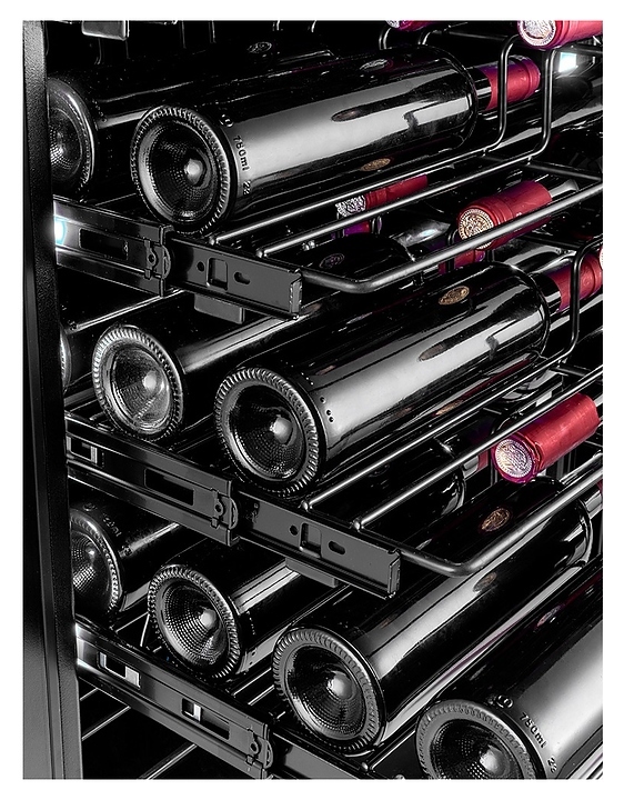 - Специальная двухуровневая конструкция полок для эффектной демонстрации с обзором винных этикеток