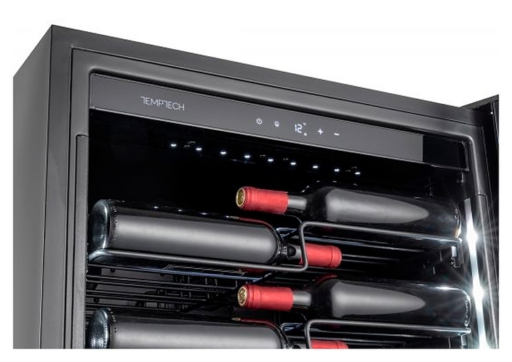 Винный шкаф Temptech Copenhagen CPRO1800SX предназначен для охлаждения, хранения при оптимальных условиях и демонстрации бутилированного вина различных сортов в барах, ресторанах, специализированных магазинах, подсобных складских помещениях, а также домашних условиях. Модель оснащена монотемпературной холодильной камерой с 12 выдвижными полками на телескопических направляющих, фронтальной цокольной решеткой и распашной дверью с прозрачным обзорным остеклением. Корпус и рама двери выполнены из металла с антикоррозийным покрытием черного цвета, рама двери с покрытием цвета нержавеющей стали, полки – из стали.