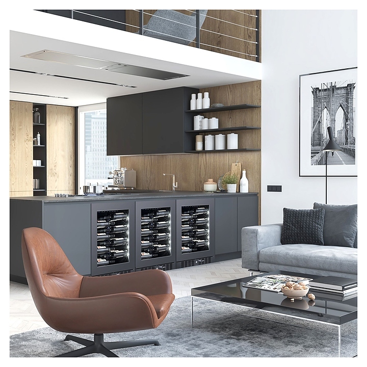 Винный шкаф Temptech Copenhagen CPROX60SRB-24 предназначен для охлаждения, хранения и демонстрации бутилированного вина в отелях, винных магазинах, на предприятиях общественного питания и торговли. Модель оснащена сенсорной панелью с дисплеем, 4 полностью выдвижными полками с возможностью просмотра этикеток, дверцей со встроенной ручкой, фильтром с активированным углем и белой светодиодной боковой подсветкой. Дверца выполнена из двухслойного стекла, заполненного аргоном и с защитой от УФ-лучей, передняя панель - из черного стекла.