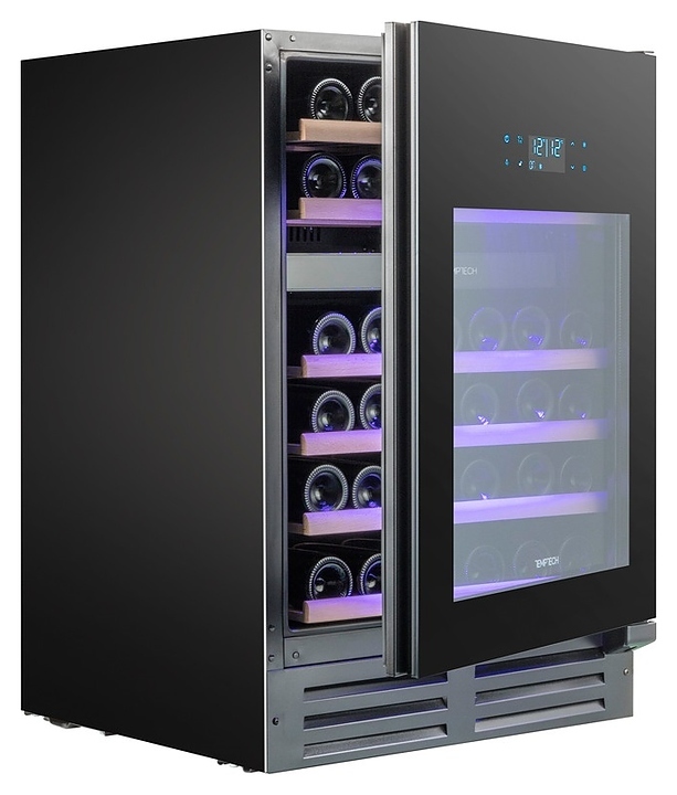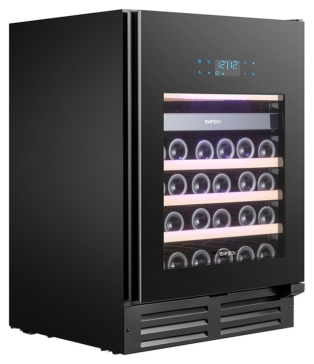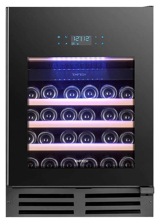 Винный шкаф Temptech Elegance EX60DRB предназначен для охлаждения, хранения при оптимальных условиях и демонстрации бутилированного вина различных сортов в барах, ресторанах, специализированных магазинах, подсобных складских помещениях, а также домашних условиях. Модель оснащена холодильной камерой с 2 независимыми температурными зонами, 6 выдвижными полками, фронтальной цокольной решеткой и распашной дверью с прозрачным обзорным остеклением. Корпус и рама двери выполнены из металла с антикоррозийным покрытием черного цвета, полки – из массива буковой древесины.