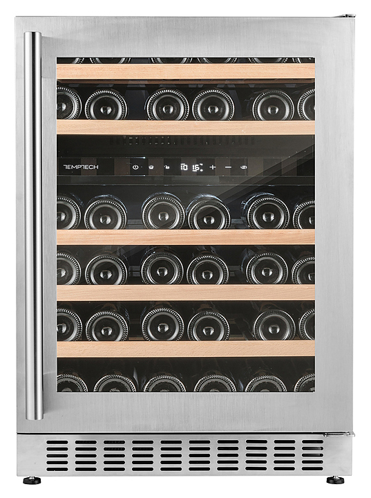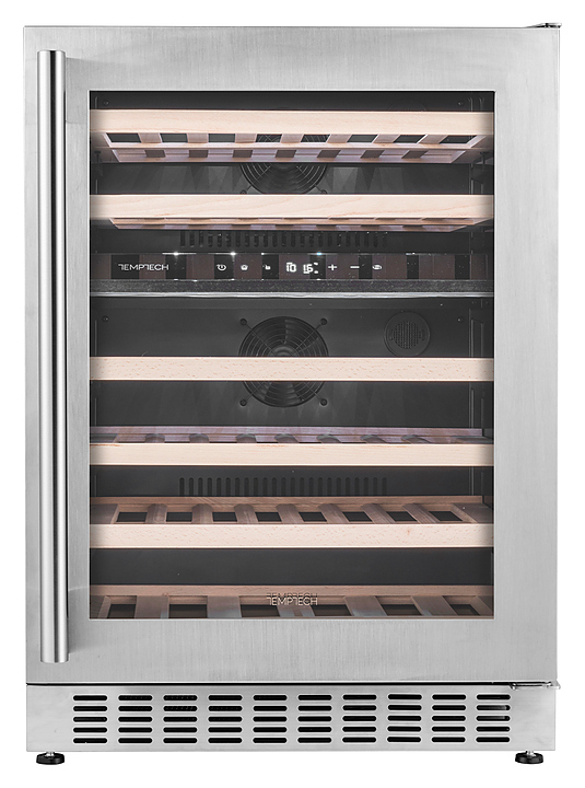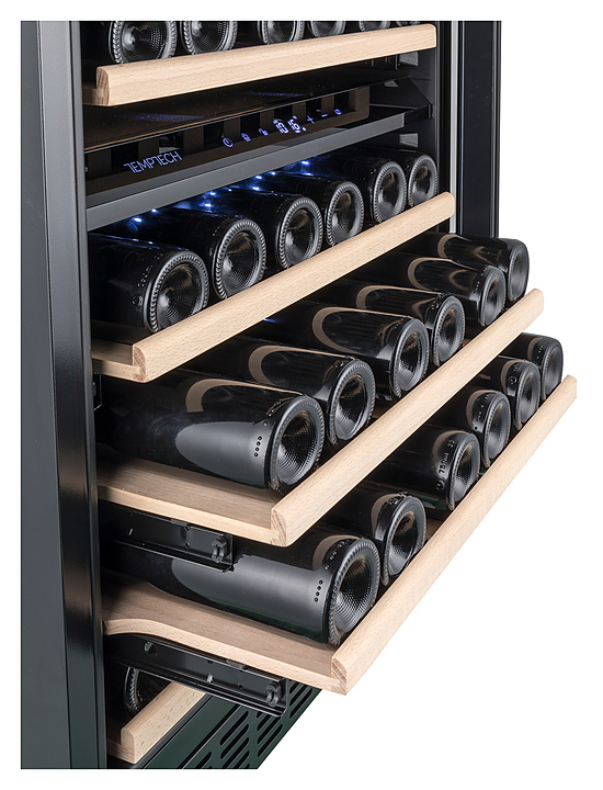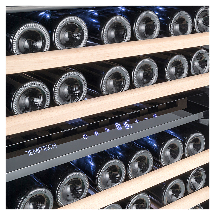 Винный шкаф Temptech Oslo OX60DX предназначен для охлаждения, хранения и демонстрации бутилированного вина в отелях, винных магазинах, на предприятиях общественного питания и торговли. Модель оснащена сенсорной панелью с дисплеем для регулировки температуры и освещения, 6 полками, фильтром с активированным углем и белой светодиодной подсветкой. Дверца выполнена из двухслойного стекла, заполненного аргоном, и с защитой от УФ-лучей, передняя панель - из нержавеющей стали, полки - из бука.