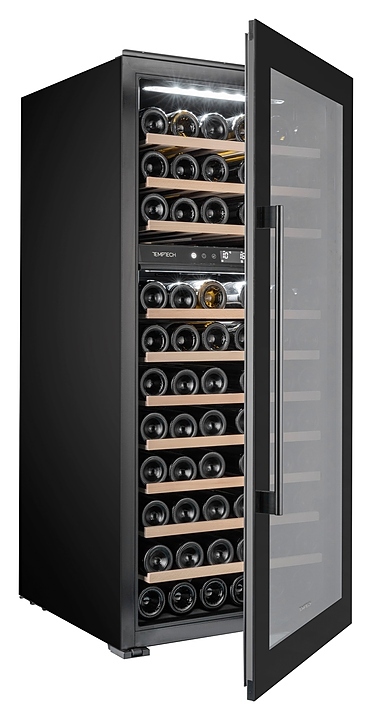 Винный шкаф Temptech Oslo OZ124DB предназначен для охлаждения, хранения при оптимальных условиях и демонстрации бутилированного вина различных сортов в барах, ресторанах, специализированных магазинах, подсобных складских помещениях, а также домашних условиях. Модель оснащена холодильной камерой с 10 выдвижными полками, распашной дверью на перенавешиваемых петлях с вертикальной рукояткой и обзорным окном. Корпус выполнен из металла с антикоррозийным покрытием, полки – из массива буковой древесины.