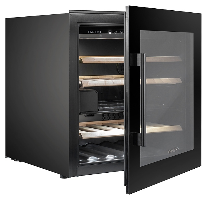 Винный шкаф Temptech Oslo OZ60DB предназначен для охлаждения, хранения при оптимальных условиях и демонстрации бутилированного вина различных сортов в барах, ресторанах, специализированных магазинах, подсобных складских помещениях, а также домашних условиях. Модель оснащена холодильной камерой с 3 выдвижными полками, распашной дверью на перенавешиваемых петлях с вертикальной рукояткой и обзорным окном. Корпус выполнен из металла с антикоррозийным покрытием, полки – из массива буковой древесины.