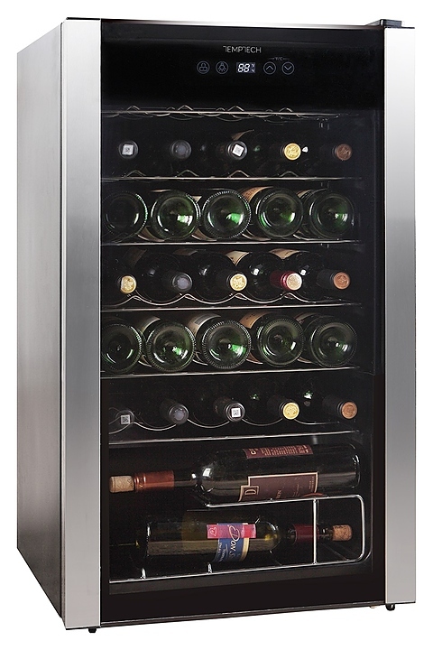 Винный шкаф Temptech Performance PWF9500SBS предназначен для охлаждения, хранения при оптимальных условиях и демонстрации бутилированного вина различных сортов в барах, ресторанах, специализированных магазинах, подсобных складских помещениях, а также домашних условиях. Модель оснащена холодильной камерой с 7 выдвижными полками, распашной дверью с интегрированной рукояткой и обзорным окном. Дверь выполнена из стекла на стальной раме, полки – из стали.