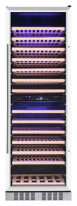 Винный шкаф Temptech Premium WP180DCS предназначен для охлаждения, хранения при оптимальных условиях и демонстрации бутилированного вина различных сортов в барах, ресторанах, специализированных магазинах, подсобных складских помещениях, а также домашних условиях. Модель оснащена холодильной камерой с 2 независимыми температурными зонами, 14 выдвижными полками, фронтальной цокольной решеткой, распашной дверью на перенавешиваемых петлях с длинной вертикальной рукояткой и прозрачным обзорным остеклением. Корпус выполнен из металла с антикоррозийным покрытием черного цвета, дверная рама – из нержавеющей стали, полки – из массива буковой древесины.