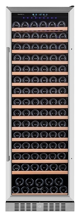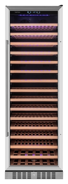 Винный шкаф Temptech Premium WP180SCS предназначен для охлаждения, хранения при оптимальных условиях и демонстрации бутилированного вина различных сортов в барах, ресторанах, специализированных магазинах, подсобных складских помещениях, а также домашних условиях. Модель оснащена монотемпературной холодильной камерой с 15 выдвижными полками, фронтальной цокольной решеткой, распашной дверью на перенавешиваемых петлях с длинной вертикальной рукояткой и прозрачным обзорным остеклением. Корпус выполнен из металла с антикоррозийным покрытием черного цвета, дверная рама – из нержавеющей стали, полки – из массива буковой древесины.