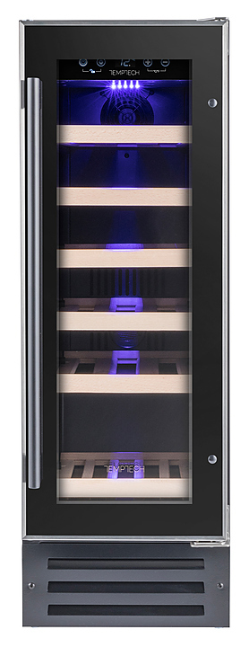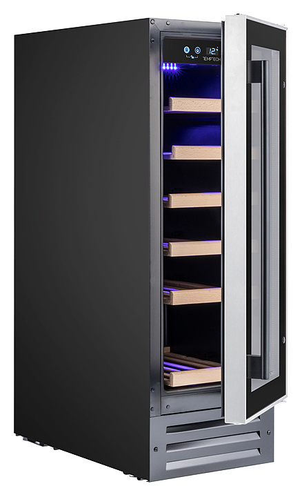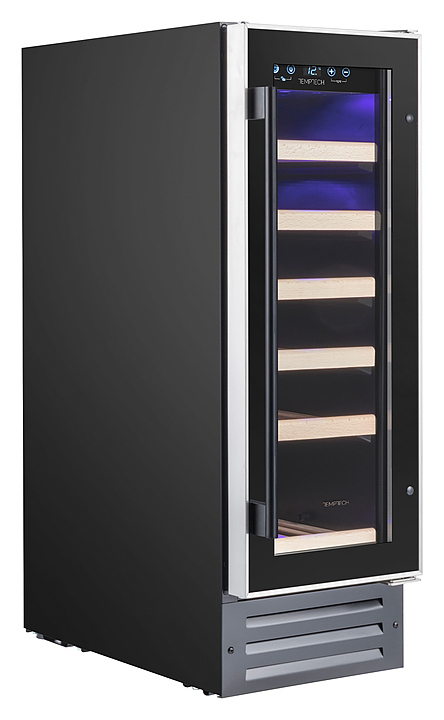 Винный шкаф Temptech Premium WPQ30SCB предназначен для охлаждения, хранения и демонстрации бутилированного вина в отелях, винных магазинах, на предприятиях общественного питания и торговли. Модель оснащена сенсорной панелью с дисплеем для регулировки температуры и освещения, 6 выдвижными полками, фильтром с активированным углем и синей светодиодной подсветкой. Дверца выполнена из двухслойного стекла с защитой от УФ-лучей, передняя панель - из черного стекла в тонкой стальной раме, полки - из бука.