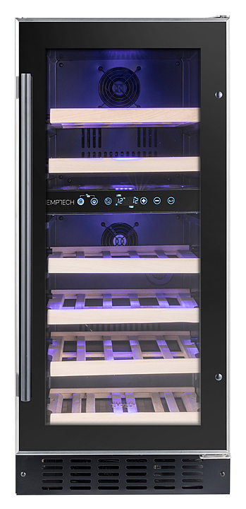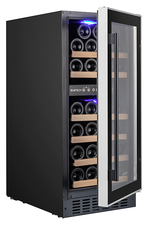 Винный шкаф Temptech Premium WPQ38DCB предназначен для охлаждения, хранения и демонстрации бутилированного вина в отелях, винных магазинах, на предприятиях общественного питания и торговли. Модель оснащена сенсорной панелью с дисплеем для регулировки температуры и освещения, 6 выдвижными полками, фильтром с активированным углем и синей светодиодной подсветкой. Дверца выполнена из двухслойного стекла с защитой от УФ-лучей, передняя панель - из черного стекла, полки - из бука.