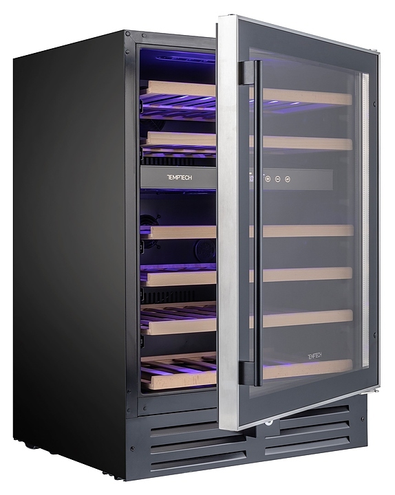 Винный шкаф Temptech Premium WPQ60DCB предназначен для охлаждения, хранения при оптимальных условиях и демонстрации бутилированного вина различных сортов в барах, ресторанах, специализированных магазинах, подсобных складских помещениях, а также домашних условиях. Модель оснащена холодильной камерой с 6 выдвижными полками, фронтальными цокольными жалюзи, распашной дверью на перенавешиваемых петлях с вертикальной рукояткой и обзорным окном. Корпус выполнен из металла с антикоррозийным покрытием, окантовка дверной рамы – из нержавеющей стали, полки – из массива буковой древесины.