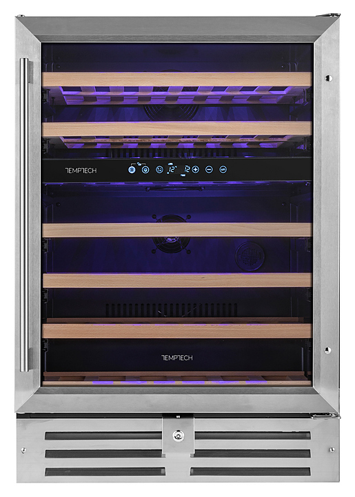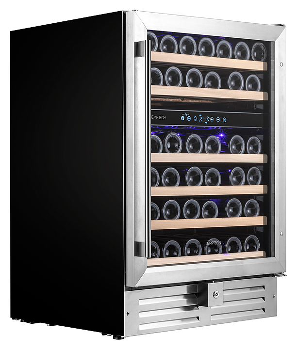 Винный шкаф Temptech Premium WPQ60DCS предназначен для охлаждения, хранения и демонстрации бутилированного вина в отелях, винных магазинах, на предприятиях общественного питания и торговли. Модель оснащена сенсорной панелью с дисплеем для регулировки температуры и освещения, 6 выдвижными полками, дверцей с замком, фильтром с активированным углем и синей светодиодной подсветкой. Дверца выполнена из двухслойного стекла с защитой от УФ-лучей, передняя панель - из нержавеющей стали, полки - из бука.