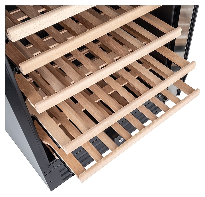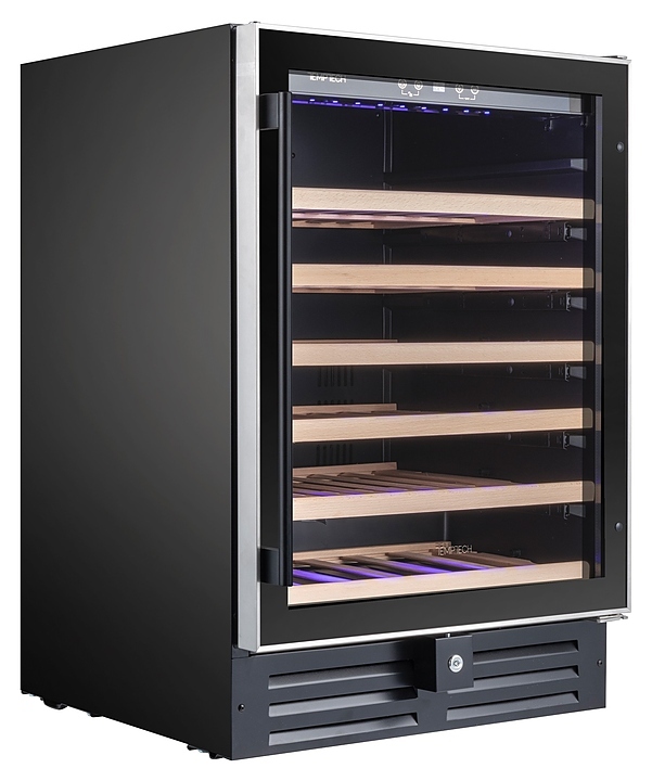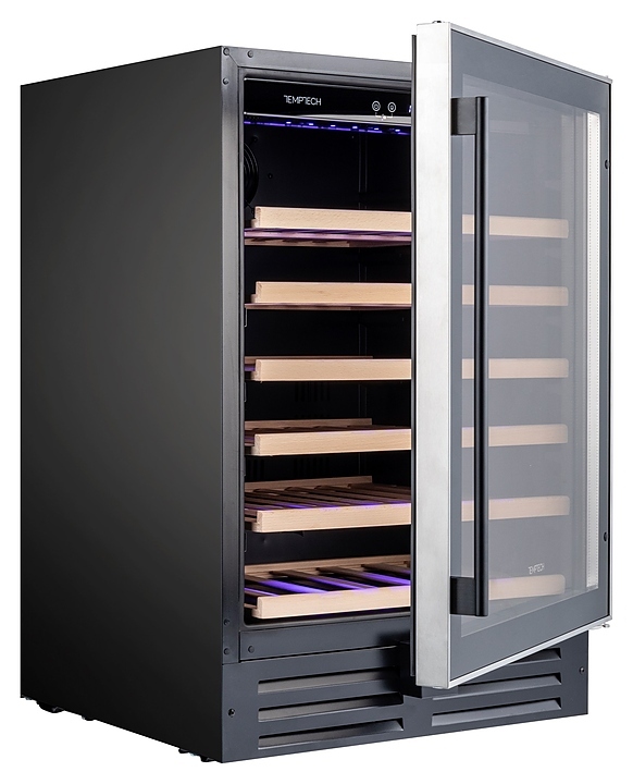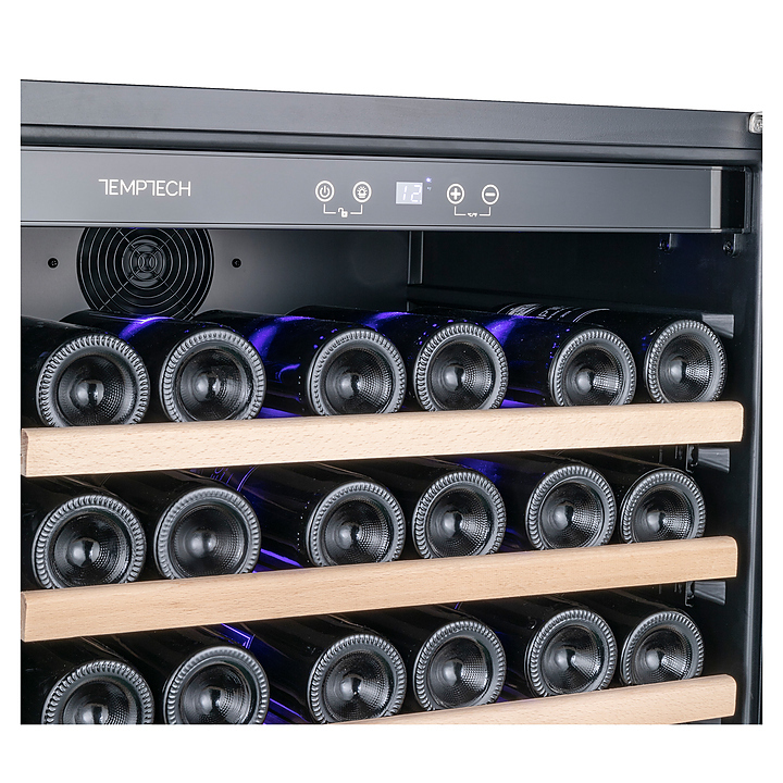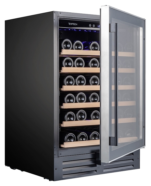 Винный шкаф Temptech Premium WPQ60SCB предназначен для охлаждения, хранения при оптимальных условиях и демонстрации бутилированного вина различных сортов в барах, ресторанах, специализированных магазинах, подсобных складских помещениях, а также домашних условиях. Модель оснащена холодильной камерой с 6 выдвижными полками, фронтальными цокольными жалюзи, распашной дверью на перенавешиваемых петлях с вертикальной рукояткой и обзорным окном. Корпус выполнен из металла с антикоррозийным покрытием, окантовка дверной рамы – из нержавеющей стали, полки – из массива буковой древесины.