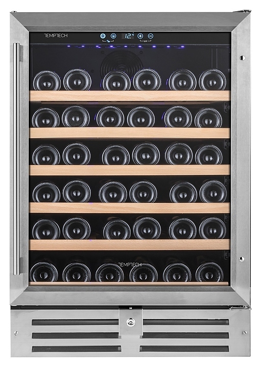 Винный шкаф Temptech Premium WPQ60SCS предназначен для охлаждения, хранения при оптимальных условиях и демонстрации бутилированного вина различных сортов в барах, ресторанах, специализированных магазинах, подсобных складских помещениях, а также домашних условиях. Модель оснащена холодильной камерой с 6 выдвижными полками, фронтальными цокольными жалюзи, распашной дверью на перенавешиваемых петлях с вертикальной рукояткой и обзорным окном. Корпус выполнен из металла с антикоррозийным покрытием, дверная рама – из нержавеющей стали, полки – из массива буковой древесины.