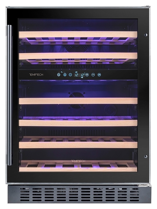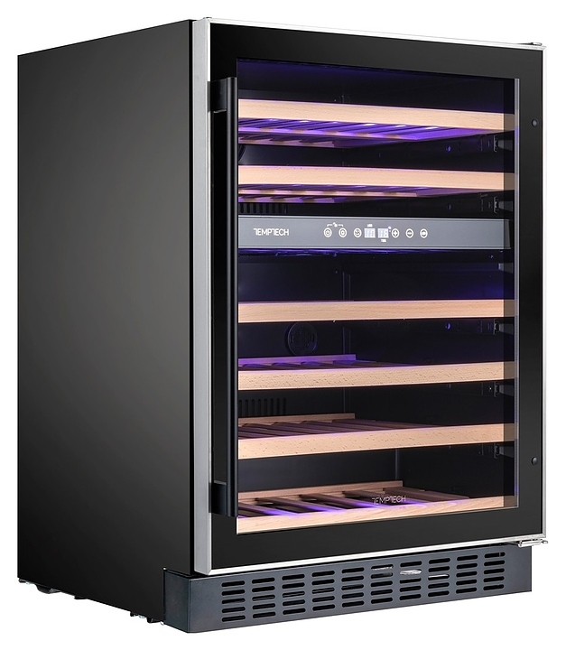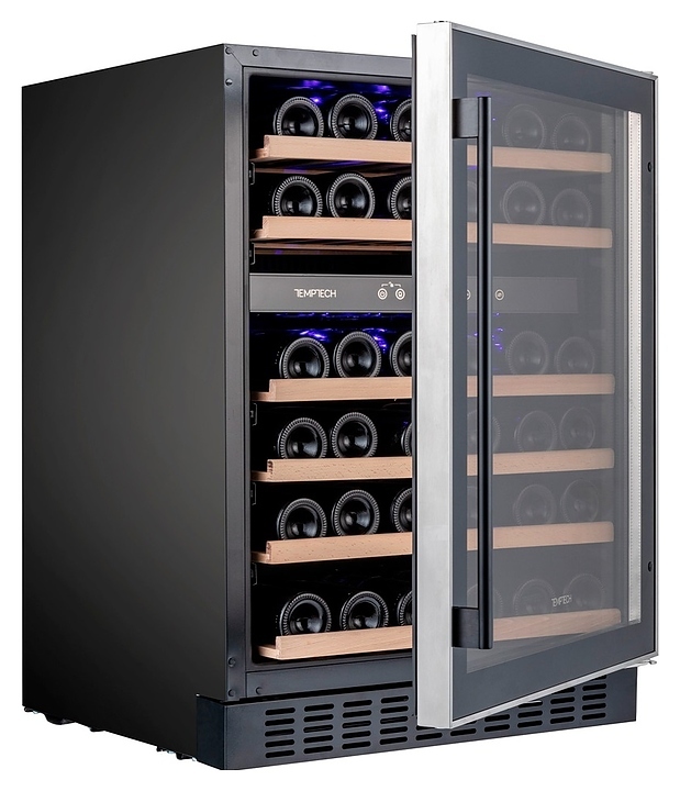 Винный шкаф Temptech Premium WPX60DCB предназначен для охлаждения, хранения при оптимальных условиях и демонстрации бутилированного вина различных сортов в барах, ресторанах, специализированных магазинах, подсобных складских помещениях, а также домашних условиях. Модель оснащена холодильной камерой с 2 независимыми температурными зонами, 6 выдвижными полками, фронтальными цокольными жалюзи, распашной дверью на перенавешиваемых петлях с длинной вертикальной рукояткой и прозрачным обзорным остеклением. Корпус выполнен из металла с антикоррозийным покрытием черного цвета, окантовка дверной рамы – из нержавеющей стали, полки – из массива буковой древесины.