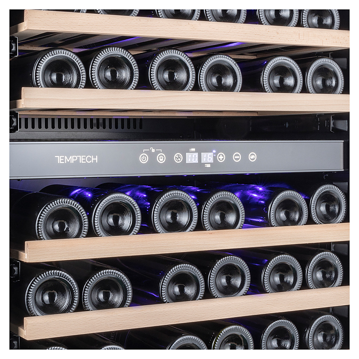 Винный шкаф Temptech Premium WPX60DCS предназначен для охлаждения, хранения и демонстрации бутилированного вина в отелях, винных магазинах, на предприятиях общественного питания и торговли. Модель оснащена сенсорной панелью с дисплеем для регулировки температуры и освещения, 6 выдвижными полками, фильтром с активированным углем и синей светодиодной подсветкой. Дверца выполнена из двухслойного стекла с защитой от УФ-лучей, передняя панель - из нержавеющей стали, полки - из бука.