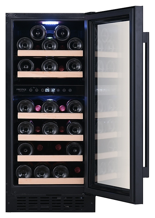 Винный шкаф Temptech Prestige PRESQ38DB-24 предназначен для охлаждения, хранения при оптимальных условиях и демонстрации бутилированного вина различных сортов в барах, ресторанах, специализированных магазинах, подсобных складских помещениях, а также в домашних условиях. Модель оснащена сенсорной панелью с цифровым дисплеем, 6 выдвижными полками, фильтром с активированным углем и белой светодиодной подсветкой. Дверца выполнена из трехслойного стекла с УФ-фильтром, передняя панель - из черного стекла, полки - из бука.