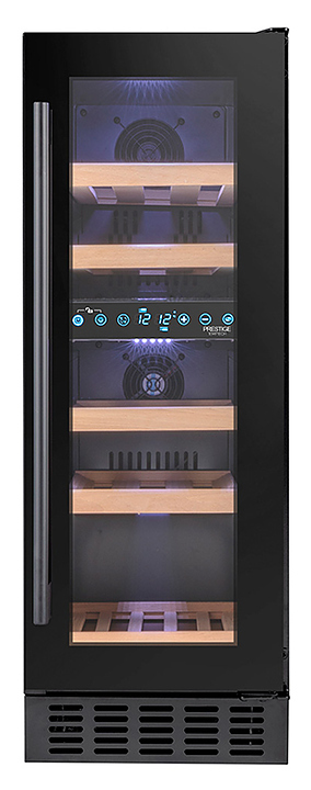 Винный шкаф Temptech Prestige PRESX30DB предназначен для охлаждения, хранения и демонстрации бутилированного вина в отелях, винных магазинах, на предприятиях общественного питания и торговли. Модель оснащена сенсорной панелью с дисплеем для регулировки температуры и освещения, 5 выдвижными полками и белой светодиодной подсветкой. Дверца выполнена из трехслойного стекла с защитой от УФ-лучей, передняя панель - из черного стекла, полки - из бука.