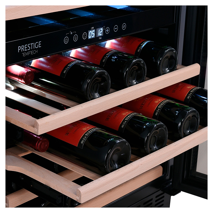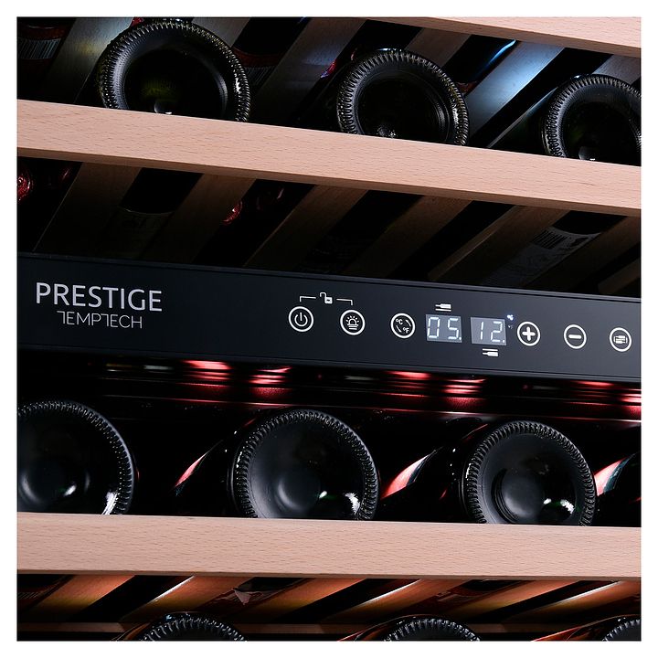 Винный шкаф Temptech Prestige PRESX60DB предназначен для охлаждения, хранения и демонстрации бутилированного вина в отелях, винных магазинах, на предприятиях общественного питания и торговли. Модель оснащена сенсорной панелью с дисплеем для регулировки температуры и освещения, 6 выдвижными полками, фильтром с активированным углем и белой светодиодной подсветкой. Дверца выполнена из трехслойного стекла с защитой от УФ-лучей, передняя панель - из черного стекла, полки - из бука.