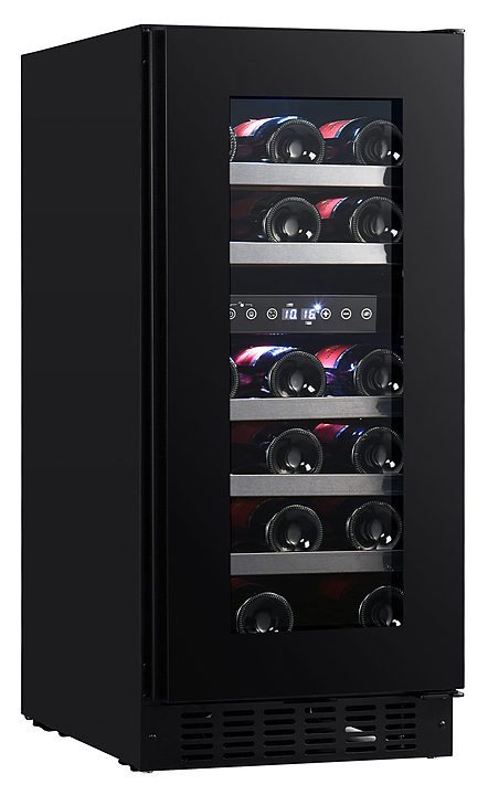 Винный шкаф Temptech Sommelier SOMQ38DRB-24 предназначен для охлаждения, хранения и демонстрации бутилированного вина в отелях, винных магазинах, на предприятиях общественного питания и торговли. Модель оснащена сенсорной панелью с дисплеем для регулировки температуры и освещения, 6 выдвижными полками, дверью со встроенной ручкой, фильтром с активированным углем и белой светодиодной подсветкой. Дверца выполнена из двухслойного стекла с защитой от УФ-лучей, передняя панель - из черного стекла, полки - из дерева, декорированного накладками черного цвета.
