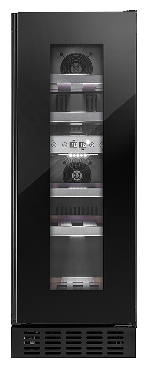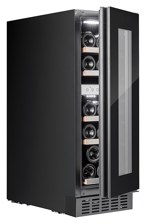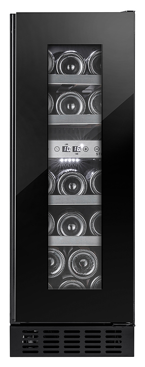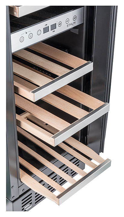 Винный шкаф Temptech STHLM STX30DRB предназначен для охлаждения, хранения и демонстрации бутилированного вина в отелях, винных магазинах, на предприятиях общественного питания и торговли. Модель оснащена сенсорной панелью с дисплеем для регулировки температуры и освещения, 5 выдвижными полками, дверцей со встроенной ручкой и белой светодиодной подсветкой. Дверца выполнена из трехслойного стекла с защитой от УФ-лучей, передняя панель - из черного стекла, полки - из необработанного бука с деталями из нержавеющей стали.