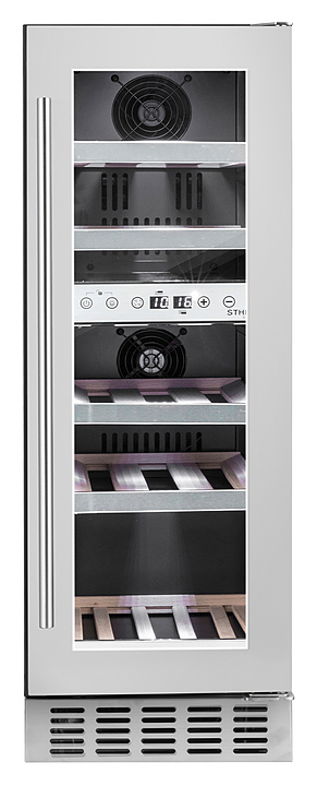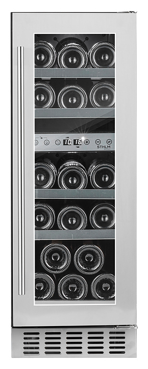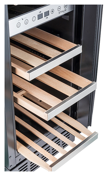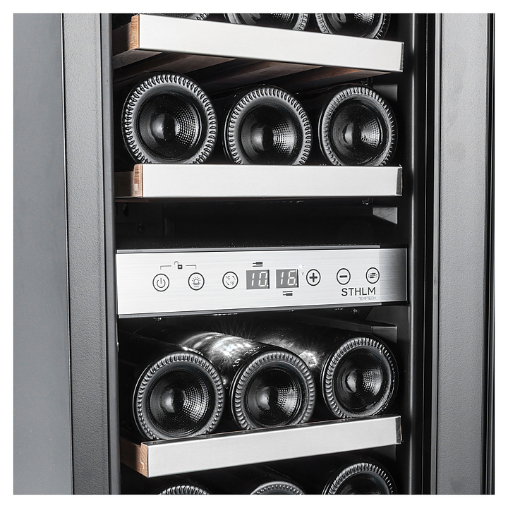 Винный шкаф Temptech STHLM STX30DS предназначен для охлаждения, хранения и демонстрации бутилированного вина в отелях, винных магазинах, на предприятиях общественного питания и торговли. Модель оснащена сенсорной панелью с дисплеем для регулировки температуры и освещения, 5 выдвижными полками и белой светодиодной подсветкой. Дверца выполнена из трехслойного стекла с защитой от УФ-лучей, передняя панель - из нержавеющей стали, ручка - из стали, полки - из необработанного бука с деталями из нержавеющей стали.