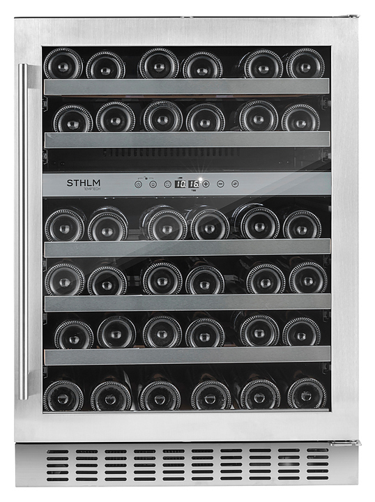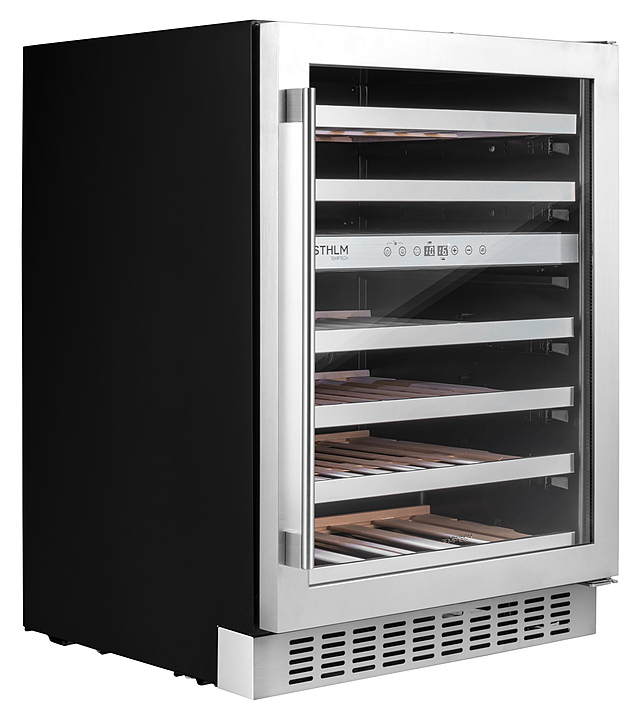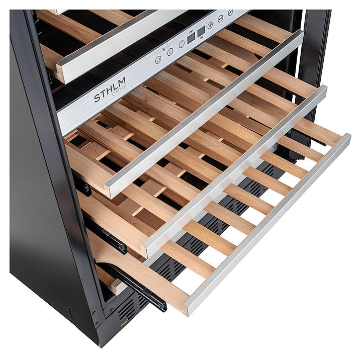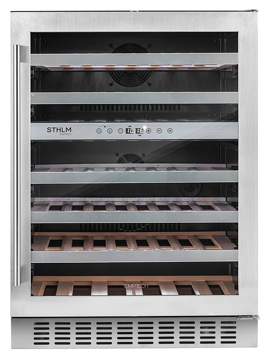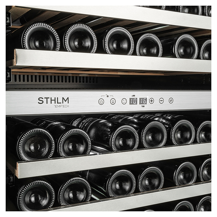 Винный шкаф Temptech STHLM STX60DS предназначен для охлаждения, хранения и демонстрации бутилированного вина в отелях, винных магазинах, на предприятиях общественного питания и торговли. Модель оснащена сенсорной панелью с дисплеем для регулировки температуры и освещения, 6 выдвижными полками, фильтром с активированным углем и белой светодиодной подсветкой. Дверца выполнена из трехслойного стекла с защитой от УФ-лучей, передняя панель - из нержавеющей стали, ручка - из стали, полки - из необработанного бука с деталями из нержавеющей стали.