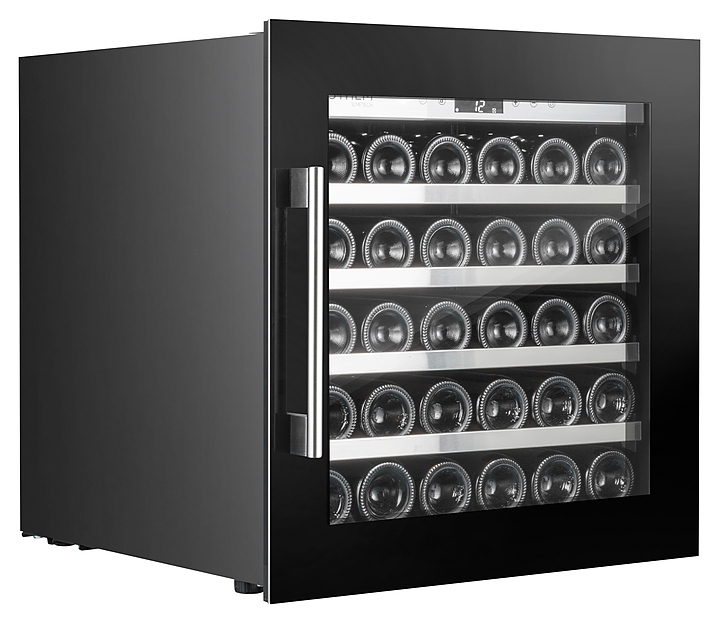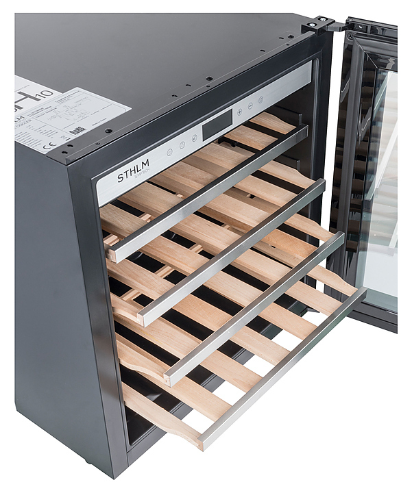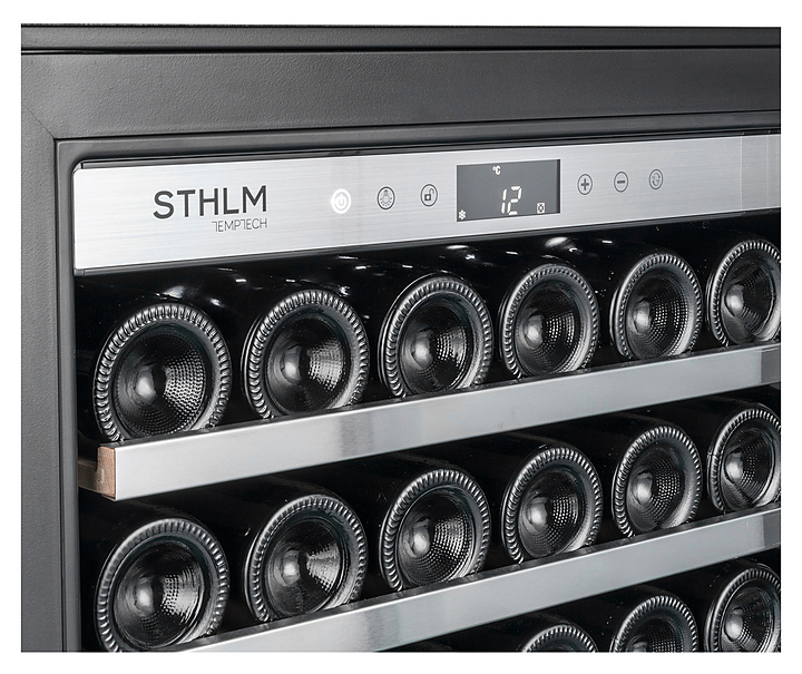 Винный шкаф Temptech STHLM STZ60SB предназначен для охлаждения, хранения и демонстрации бутилированного вина в отелях, винных магазинах, на предприятиях общественного питания и торговли. Модель оснащена сенсорной панелью с дисплеем для регулировки температуры и освещения, 4 выдвижными полками, фильтром с активированным углем и белой светодиодной подсветкой. Дверца выполнена из двухслойного стекла, заполненного аргоном, с защитой от УФ-лучей, передняя панель - из черного стекла, ручка - из нержавеющей стали, полки - из необработанного бука с деталями из нержавеющей стали.