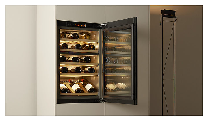 Встраиваемый винный шкаф V-ZUG WineCooler V4000 90 WC4T-51102 R предназначен для хранения при оптимальных условиях и демонстрации бутилированного вина различных сортов в барах, ресторанах, специализированных магазинах, подсобных складских помещениях, а также в домашних условиях. Модель оснащена холодильной камерой с 2 независимыми температурными зонами, правосторонней распашной дверью, прозрачным обзорным остеклением, расположенной за дверью в верхней части фронта панелью управления с сенсорными функциональными клавишами и 2 цифровыми дисплеями индикации. Корпус выполнен из металла с антикоррозийным покрытием черного цвета и полным остеклением фронта зеркальным стеклом с черной тонировкой, полки – из массива буковой древесины.