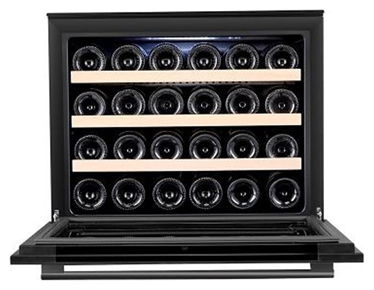 Винный шкаф Vinosafe VSC24BM предназначен для хранения при оптимальных условиях бутилированного вина различных сортов в барах, ресторанах, специализированных магазинах, подсобных складских помещениях, а также домашних условиях. Модель оснащена монотемпературной холодильной камерой, откидной дверью на скрытых внутренних петлях, длинной горизонтальной рукояткой, прозрачным обзорным остеклением, внешней сенсорной панелью управления и цифровым дисплеем. Корпус и рукоятка выполнены из металла с антикоррозийным покрытием черного цвета, полки – из массива дуба с металлической окантовкой фасада.