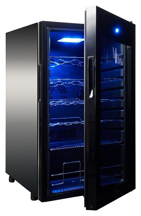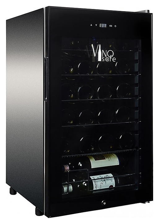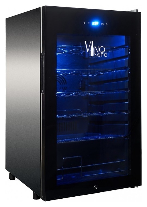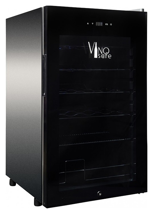 Винный шкаф Vinosafe VSF24AM предназначен для хранения при оптимальных условиях бутилированного вина различных сортов в барах, ресторанах, специализированных магазинах, подсобных складских помещениях, а также домашних условиях. Модель оснащена монотемпературной холодильной камерой, распашной дверью, прозрачным обзорным остеклением, внешней сенсорной панелью управления и цифровым дисплеем. Корпус и рама двери выполнены из металла с антикоррозийным покрытием черного цвета, полки и борт у основания – из металлического профиля с глянцевой серебристой поверхностью.