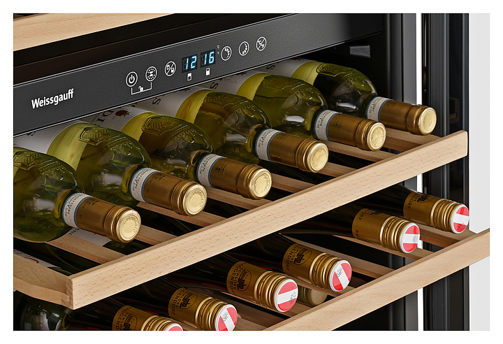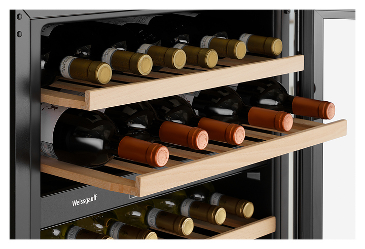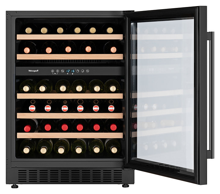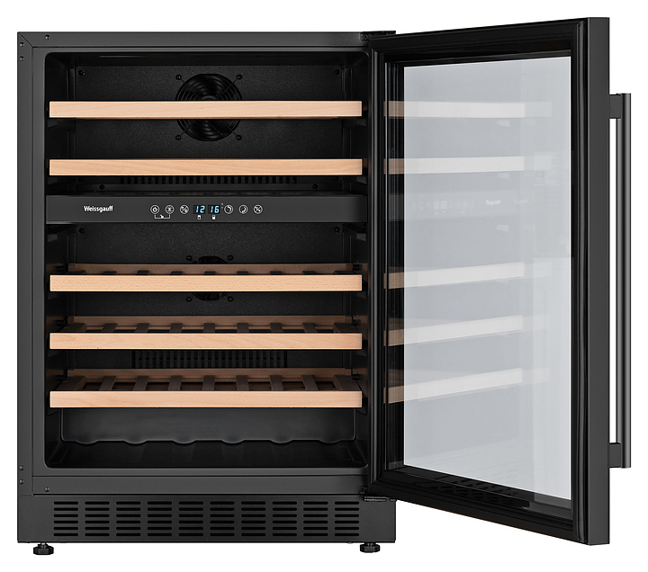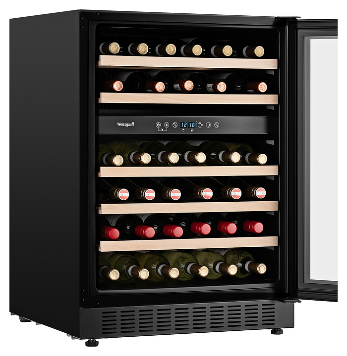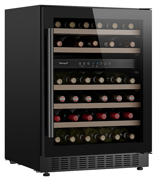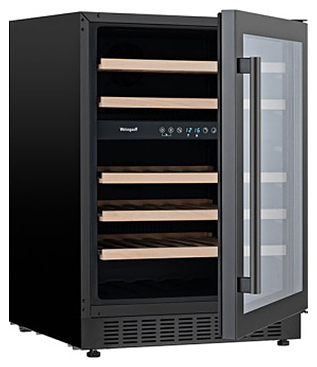 Винный шкаф Weissgauff WWC-46 DB DualZone предназначен для хранения при оптимальных условиях и демонстрации бутилированного вина различных сортов в барах, ресторанах, специализированных магазинах, складских помещениях, а также домашних условиях. Модель оснащена холодильной камерой с 2 независимыми температурными зонами, правосторонней перенавешиваемой распашной дверью на внешних петлях, длинной вертикальной рукояткой, цокольной воздушной решеткой, обзорным остеклением, кабелем питания с вилкой, расположенной внутри камеры панелью управления с сенсорными клавишами и светодиодным цифровым дисплеем с голубой подсветкой индикации. Корпус и рукоятка выполнены из металла с антикоррозийным покрытием черного цвета, внутренняя облицовка камеры черного цвета, фронт двери – из закаленного стекла с дымчатой тонировкой, полки – из массива древесины светлых пород.