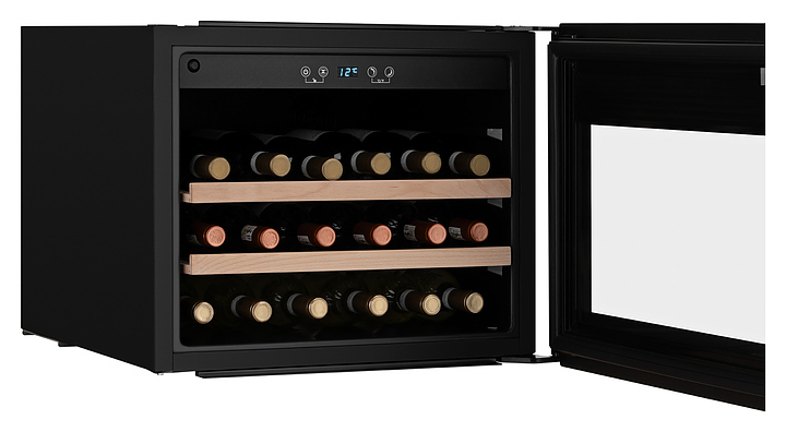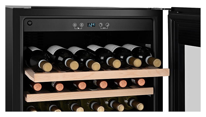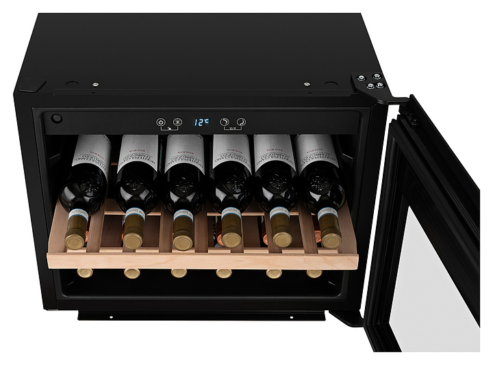 Винный шкаф Weissgauff WWCI-28 DB предназначен для хранения при оптимальных условиях и демонстрации бутилированного вина различных сортов в барах, ресторанах, специализированных магазинах, складских помещениях, а также домашних условиях. Модель оснащена монотемпературной холодильной камерой, правосторонней распашной дверью на скрытых петлях, обзорным остеклением, кабелем питания с вилкой, расположенной внутри камеры панелью управления с сенсорными клавишами и светодиодным цифровым дисплеем с голубой подсветкой индикации. Корпус выполнен из металла с антикоррозийным покрытием черного цвета, внутренняя облицовка камеры черного цвета, фронт двери – из закаленного стекла с дымчатой тонировкой, полки – из массива древесины светлых пород.