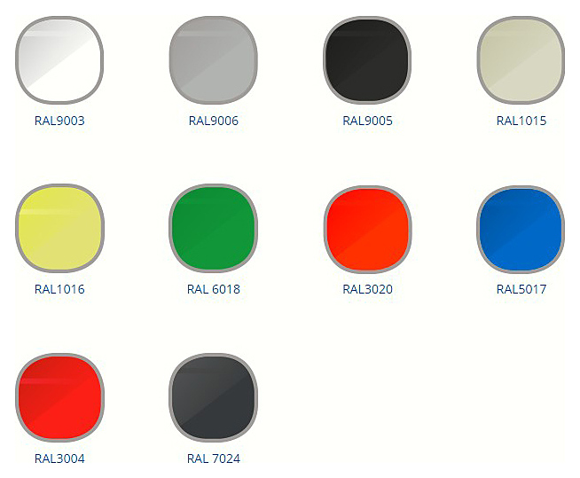 Модель доступна для заказа в сером, черном, красном, зеленом, желтом и синем цвете.