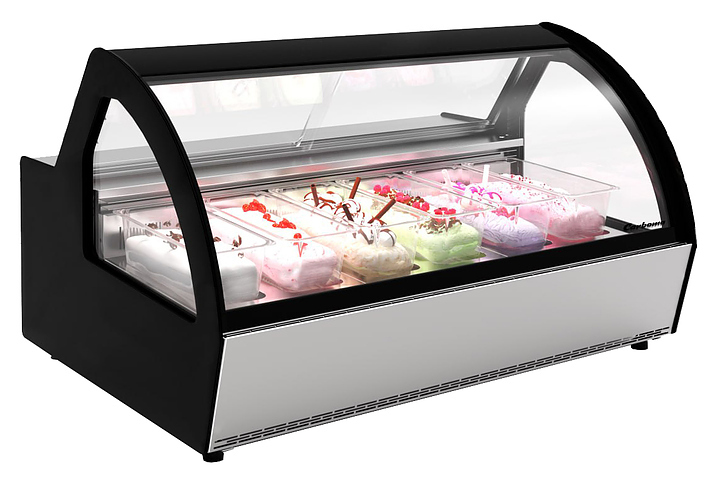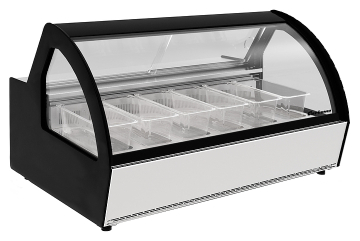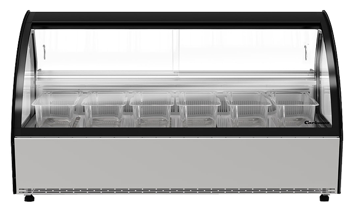 Витрина для мороженого? Carboma JOY 2 I83 VL 1,2-1 используется на предприятиях общественного питания и торговли для охлаждения, хранения и демонстрации мягкого и других видов мороженого. Модель оснащена электронным блоком управления, изогнутым фронтальным и 2 боковыми стеклопакетами высокой степени прозрачности и рабочей поверхностью-столешницей. Экспозиционные поддоны выполнены из нержавеющей стали, термоизоляция – из пенополиуретана, гастроемкости – из прозрачного поликарбоната.