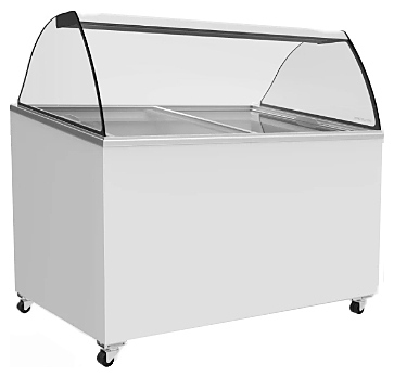 Витрина для мороженого UGUR UDR 14 предназначен для демонстрации, охлаждения и долгосрочного хранения мягкого мороженого на предприятиях общественного питания и торговли. Модель оснащена цифровым термометром и колесами с тормозом. Створки выполнены из закаленного стекла.