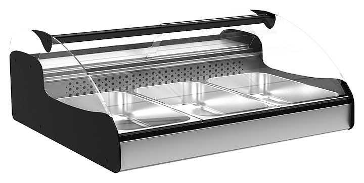 Холодильная витрина Carboma А89 SV 1,0-1 (ВХСр-1,0 Арго XL Техно) используется на предприятиях общественного питания и торговли для демонстрации, охлаждения и кратковременного хранения кондитерских изделий и десертов "семифредо", а также свежей рыбы. Модель онащена гнутым передним стеклом и ночными шторками. Корпус выполнен из стали с ППУ-теплоизоляцией, столешница и экспозиционная поверхность - из нержавеющей стали.