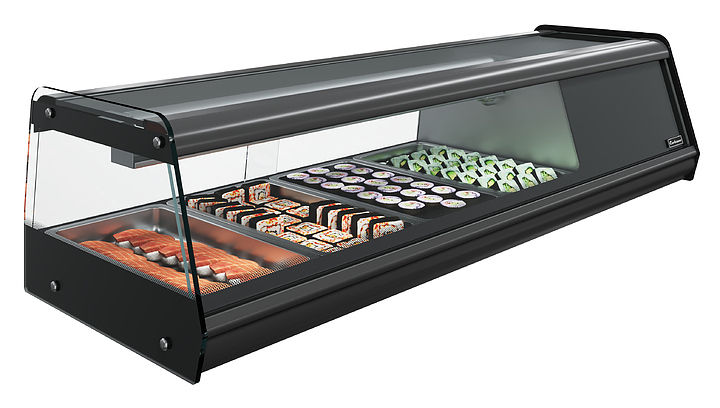 Настольная холодильная витрина? Carboma AC38 SM 1,5-1 Sushi серии AZHA SUSHI используется на предприятиях общественного питания и торговли для демонстрации и непродолжительного хранения традиционных японских блюд: роллов, суши, сашими и др. Модель оснащена цифровым контроллером, LED подсветкой и энергосберегающими шторками. Каркас выполнен из стали, экспозиционная поверхность - из нержавеющей стали, термоизоляция – из пенополиуретана.