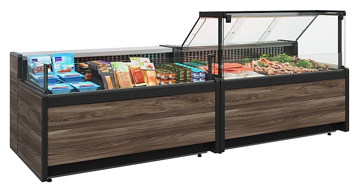 Отдельностоящие витрины приобретаются только вместе с боковинами. При заказе нескольких витрин с одинаковым температурным режимом для установки в линию достаточно заказать 2 боковины на всю линию.