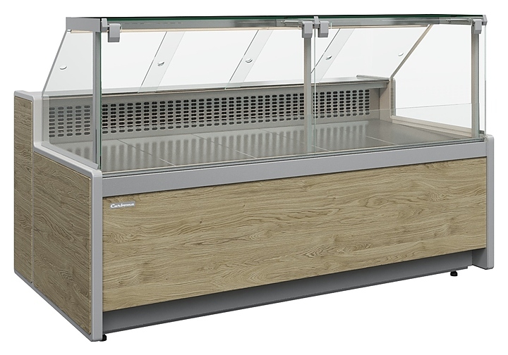 Отдельностоящие витрины приобретаются только вместе с боковинами. При заказе нескольких витрин с одинаковым температурным режимом для установки в линию достаточно заказать 2 боковины на всю линию.