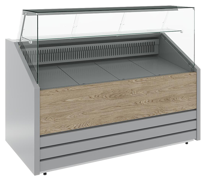 Холодильная витрина Carboma GC75 VM 1,2-1 используется на предприятиях общественного питания и торговли для охлаждения, кратковременного хранения, демонстрации и продажи продуктов питания, салатов, молочных и других гастрономических изделий. Модель оснащена регулируемыми ножками высотой от 20 до 35 мм. Столешница, зона выкладки, боковые и нижняя фронтальная панели, обшивка светильника и испарителя выполнены из окрашенной в серебристый цвет стали, декоративная передняя панель - из паттерна, держатель стекла - из нержавеющей стали. Боковины и столешница покрыты пенополиуретановой теплоизоляцией.