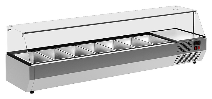 Холодильная витрина Carboma IDO A40 SM 1,6-G используется на предприятиях общественного питания и торговли для охлаждения и кратковременного хранения ингредиентов для салатов. Модель оснащена электронным блоком управления и колпаком. Корпус выполнен из нержавеющей стали, колпак - из стекла, теплоизоляция - из пенополиуретана.