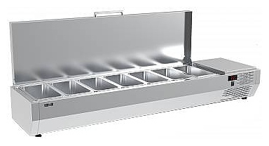 Холодильная витрина Carboma IKI A30 SM 1,6 используется на предприятиях общественного питания и торговли для охлаждения и кратковременного хранения ингредиентов для салатов. Модель оснащена крышкой с ручкой. Корпус и крышка выполнены из нержавеющей стали, теплоизоляция - из пенополиуретана.