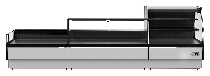 Модель без боковин предназначена для установки нескольких витрин в линию и не может использоваться как отдельностоящая. При заказе нескольких моделей для установки в линию достаточно приобрести две боковины для первой и последней витрины.