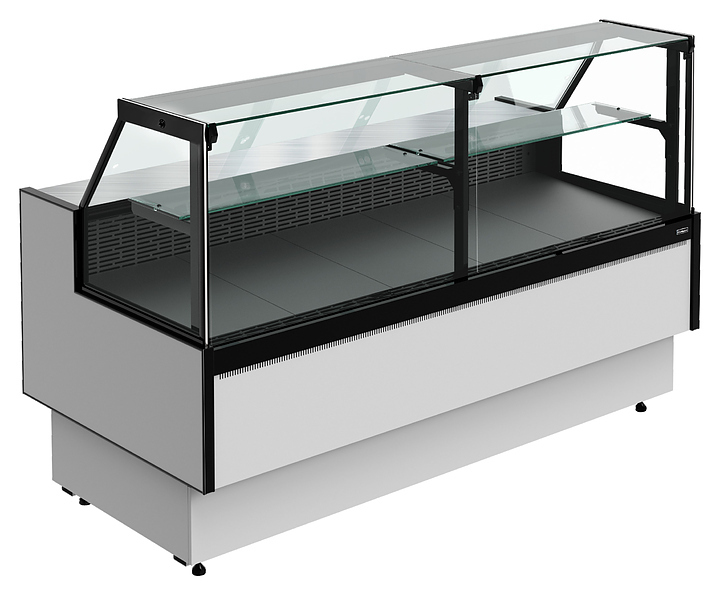 Модель без боковин предназначена для установки нескольких витрин в линию и не может использоваться как отдельностоящая. При заказе нескольких моделей для установки в линию достаточно приобрести две боковины для первой и последней витрины.