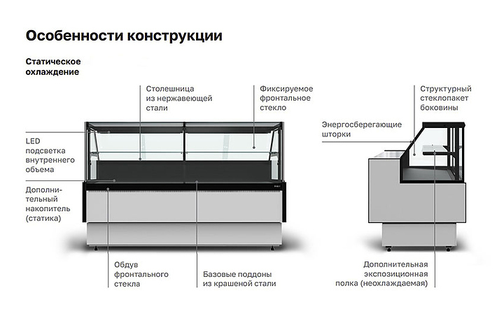 Холодильная витрина? Carboma Praia 2 GC85 SM 1,5-1 версия 2.0 используется на предприятиях общественного питания и торговли для охлаждения, кратковременного хранения, демонстрации и продажи продуктов питания, салатов, молочных и других гастрономических изделий. Модель оснащена системой защиты стекла от запотевания, экономичным и производительным компрессором и демонстрационной поверхностью черного цвета, служащей эффектным фоном для выложенных товаров.