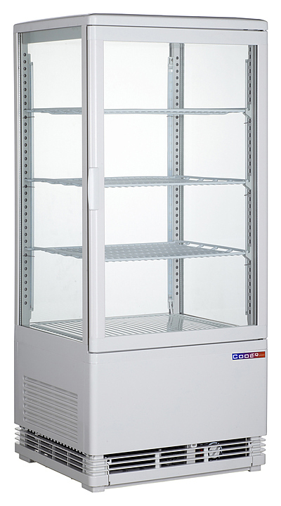 Холодильная витрина Cooleq CW-85 предназначена для демонстрации, охлаждения и кратковременного хранения продуктов и напитков на предприятиях общественного питания и торговли. Модель оснащена регулятором температуры, замком, 4 регулируемыми по высоте хромированными полками и LED-подсветкой.