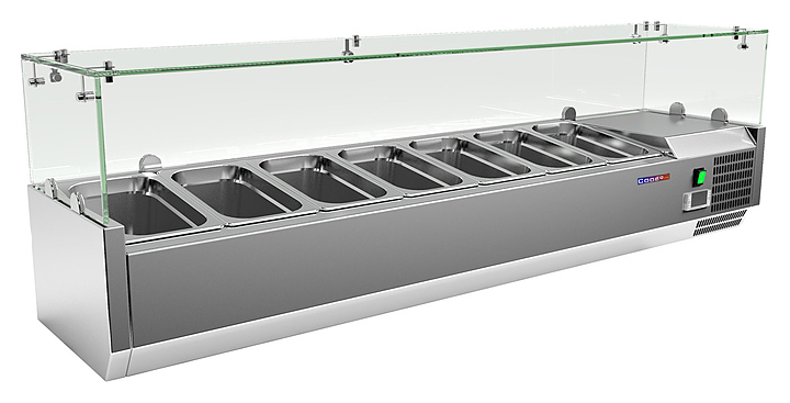 Холодильная витрина Cooleq VRX 1500/330 предназначена для демонстрации, охлаждения и кратковременного хранения салатов и закусок на предприятиях общественного питания и торговли. Модель оснащена цифровым термостатом и индикаторами охлаждения и работы компрессора. Корпус выполнен из нержавеющей стали.